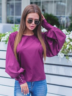 ГлавнаяКаталогЖенская одеждаБлузки Рубашки Стильная блуза без воротника с пышными рукавами марсала